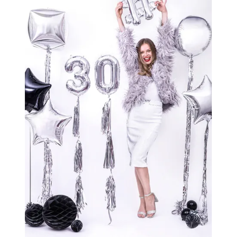 Cet accessoire, paré d'un papier aluminium argenté, mesure environ 7 cm et son poids avoisine les 130 g. Chaque acquisition de ce produit inclut 4 Poids Ballons Mylar argentés rassemblés en 1 paquet, et chaque carton qui vous sera livré contient 6 paquets.