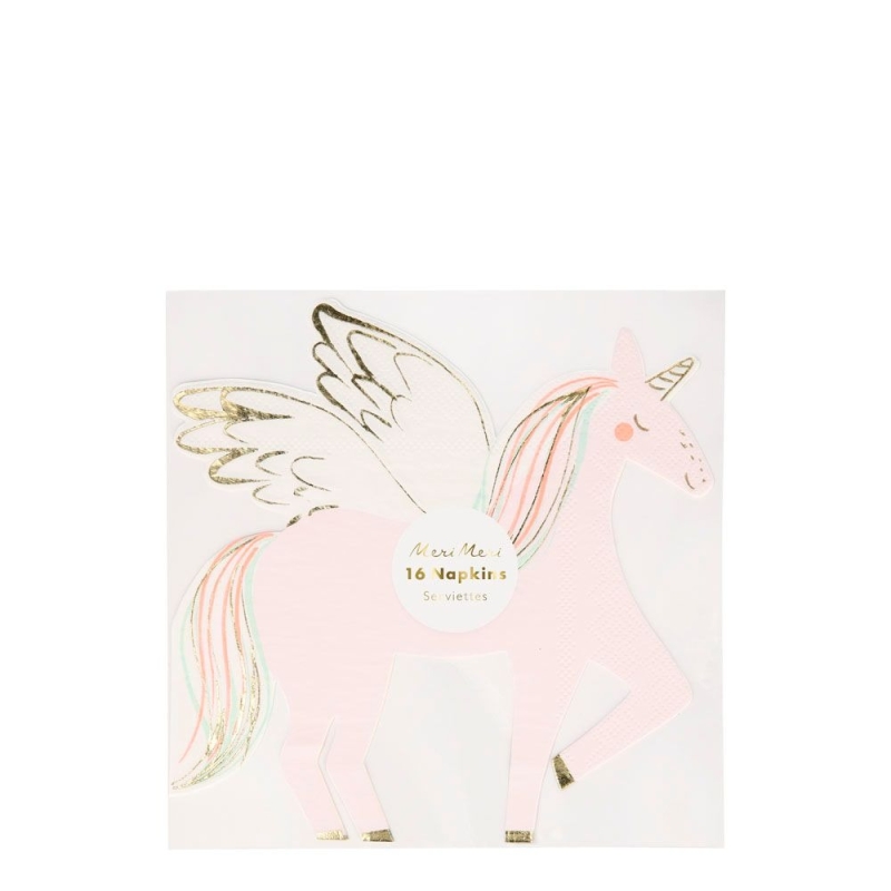 Très jolies, ces serviettes papier découpées en forme de licorne bordées d'un contour doré. Des serviettes de fête qui mettront en valeur votre décoration de table pour un anniversaire, un baptême ou une baby shower.
