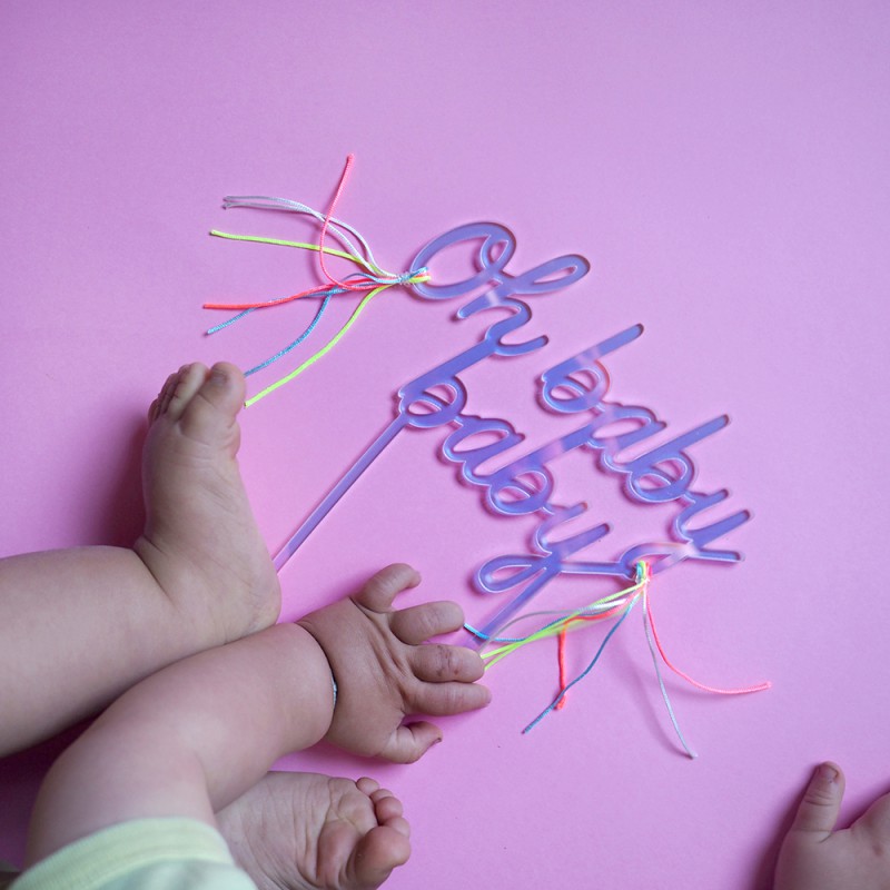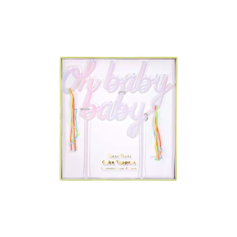 Un cake topper Oh baby baby en plastique iridescent pour décorer un gâteau d'anniversaire ou de baby shower. Particulièrement adapté pour une fête de naissance ou un 1er anniversaire, ce décor gâteau original mettra en valeur votre gâteau de fête.