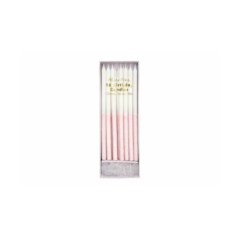 16 longues bougies paillettes roses de 17 cm de longueur qui sublimeront votre gâteau de fête.