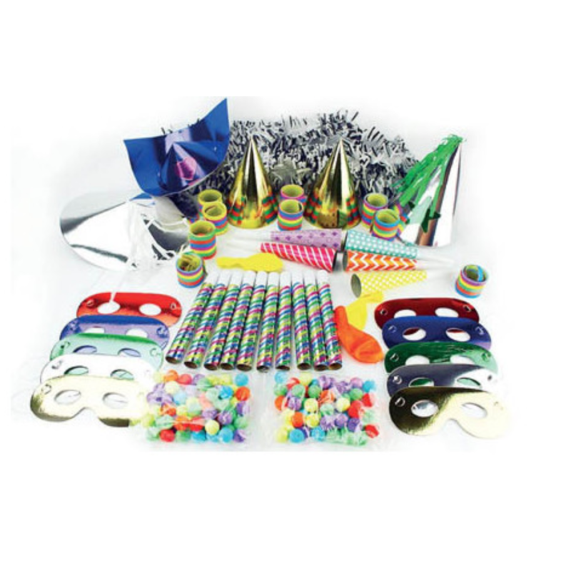 Transformez n'importe quel espace en un lieu de fête inoubliable avec notre boîte cotillons 50 personnes en carton.