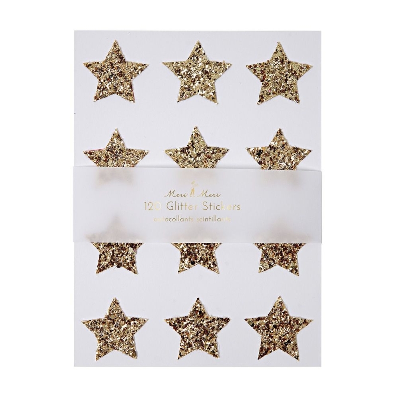 120 stickers originaux en forme d'étoile recouverts de paillettes dorées qui illumineront vos plus beaux paquets cadeaux.